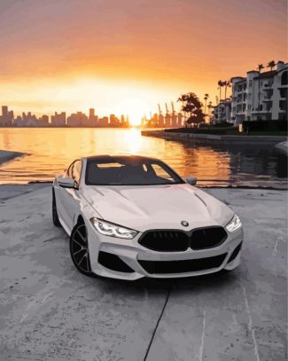 White Bmw Car At Sunset – 5D Diamond Paintings