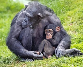 Mom Chimpanzee With Her Baby – 5D Diamond Paintings