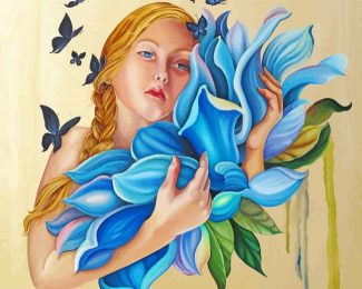 Girl Hugging Blue Dahlia – 5D Diamond Paintings