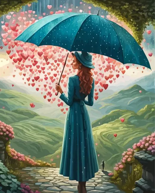 Aesthetic Girl Standing In Rain With Umbrella 5D Diamond Painting