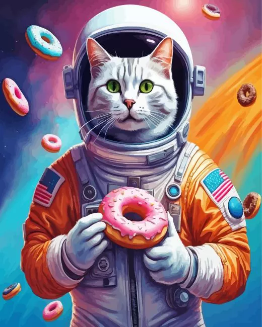 Astronaut Cat Eating Donut 5D Diamond Painting