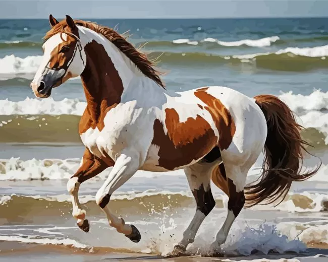 How To Start Brown And White Horse In The Beach 5D Diamond Painting Art :