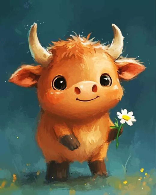 How To Start Brown Highland Calf Holding Flower 5D Diamond Painting Art :