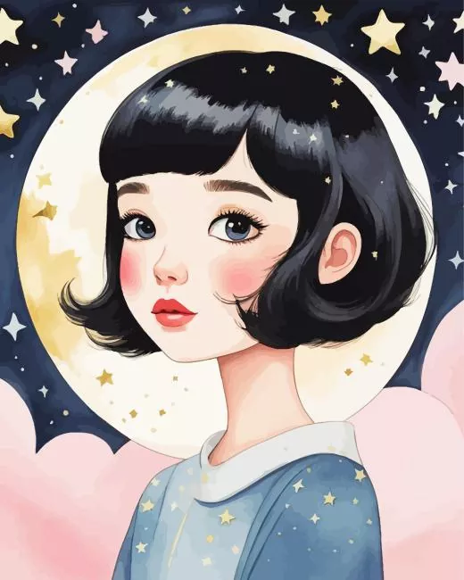 Cartoon Black Hair Girl 5D Diamond Painting