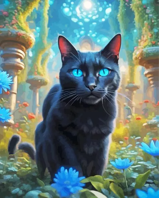 Cool Black Cat Blue Eyes 5D Diamond Painting