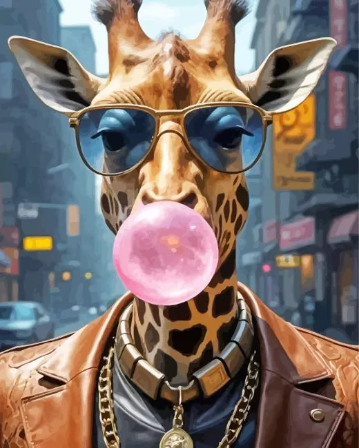 Cool Giraffe Blowing A Bubble 5D Diamond Painting