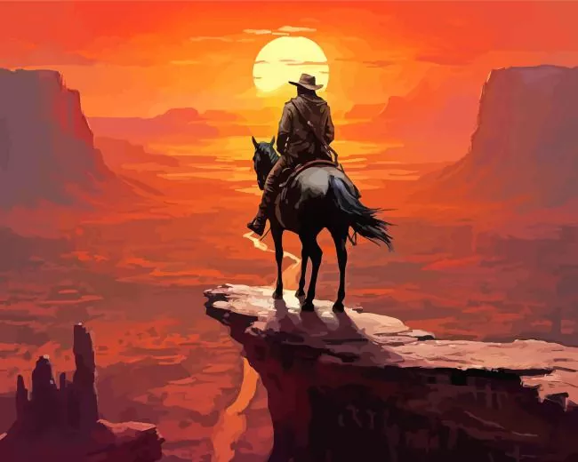 How To Start Cowboy Riding Into Sunset 5D Diamond Painting Art :