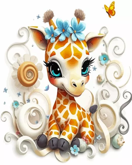 Dreamy Whimsical Giraffe In A Floral Fantasy 5D Diamond Painting