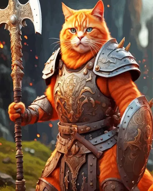 How To Start Fat Orange Cat Warrior 5D Diamond Painting Art :