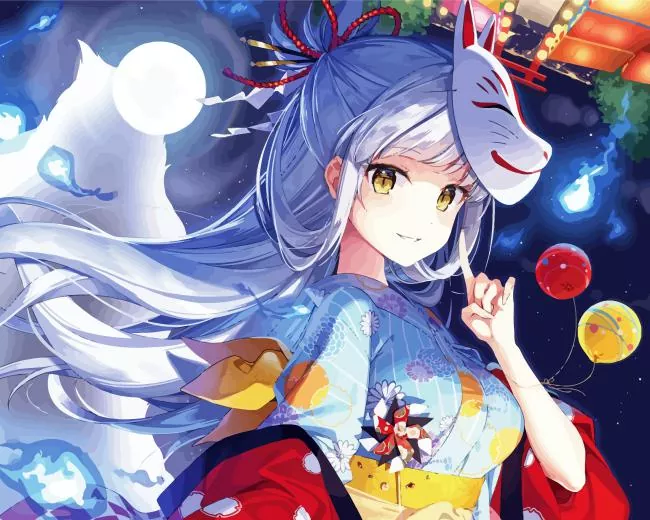 Fox Mask Anime Girl Art 5D Diamond Painting