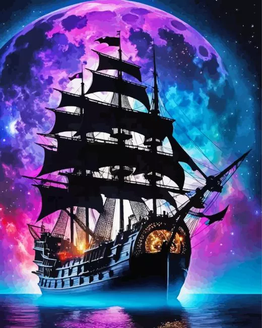 Full Moon Pirate Ship Silhouette 5D Diamond Painting