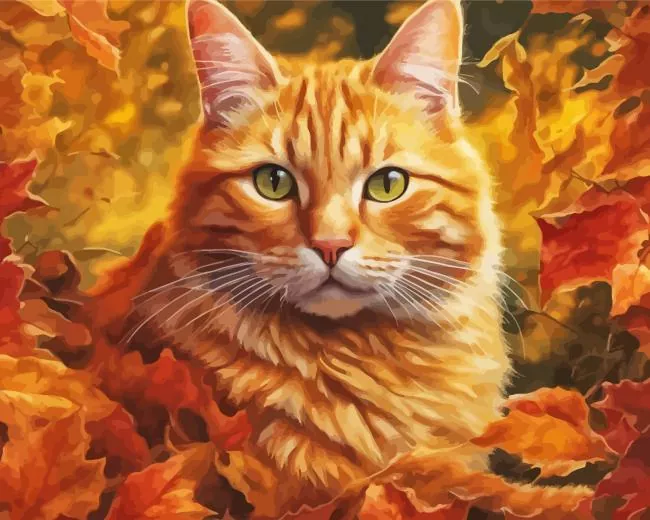 Ginger Cat In Fall Leaves 5D Diamond Painting