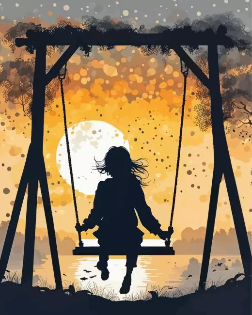 Girl In Swing Silhouette 5D Diamond Painting