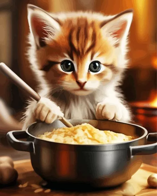 How To Start Kitten Cooking 5D Diamond Painting Art :
