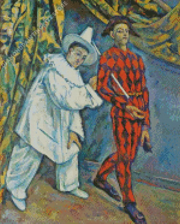 How To Start Pierrot And Harlequin By Paul Cezanne 5D Diamond Painting Art :