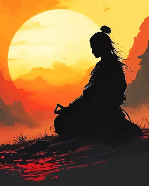 Silhouette Meditating Warrior 5D Diamond Painting