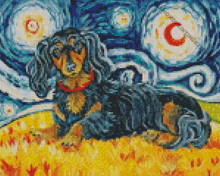 How To Start Starry Night Black Wiener Dog 5D Diamond Painting Art :
